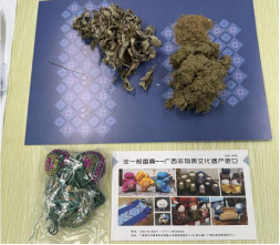 课程伊始,老师们系统讲解了麽乜的历史渊源、文化内涵与传统制作工艺。其中,“香囊配方”图谱清晰展示了防流感、驱蚊等不同功效的药材组合,生动呈现了这一融合医药智慧与民俗记忆的非遗项目。在老师的细心引导下,同学们仔细观察艾草、薄荷等天然香料,了解了其药用价值与一些配比技巧。蓝底花纹的工作垫上,经过配比、混合的干枯草药与细腻药粉散发出阵阵自然清香,悄然唤醒沉睡的嗅觉记忆。