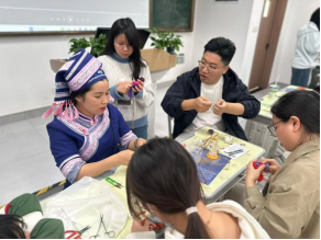 指尖藏非遗,香囊寄安康。近日,学校非遗工作坊教师团队走进江南校区,为同学们带来一场别开生面的壮族非遗“麽乜”制作技艺课程。通过此次非遗传承沉浸式教学,我校青年学子不仅近距离感受到传统工艺的魅力,更在亲手制作中完成了一场与民族文化的温暖对话。