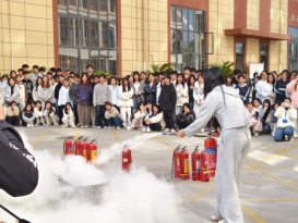 在实践环节,我校特邀消防大队专职消防员现场讲解并示范了干粉灭火器的正确使用方法,指导学生代表进行了实操灭火,极大提升了师生的实战技能。演练最后,消防员对演练过程进行了点评,充分肯定了演练成效,并再次强调了常态化开展安全教育的重要性。