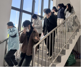 当日上午10时40分,随着消防警报拉响,演练正式启动。全体学生迅速反应,捂住口鼻,弯腰低姿,沿预定疏散路线有序撤离。各楼层、楼梯口疏导教师坚守岗位,有效防止了拥挤与踩踏可能现象。整个撤离过程紧张有序,用时约5分钟,全体人员安全抵达操场集结区。随后,各班班主任快速清点并上报人数,各工作组向指挥部汇报了执行情况。