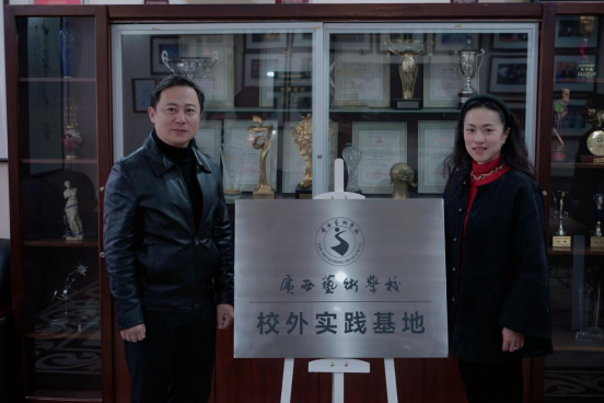 在全体与会人员的共同见证下,罗征与陆丹共同签署合作共建协议,并为“广西艺术学校校外实践基地”揭牌,标志着双方合作正式迈入资源互通、共建共享的实质性阶段。此次合作聚焦三大核心方向,一是人才共育,浙曲杂为我校学生提供专业实训、舞台实践平台及就业通道,我校则根据院团需求定制培养方案,全力达成“毕业即上岗,上岗即胜任”的育人目标;二是艺术共创,依托浙曲杂的创作优势与我校的教学资源,联合开展杂技节目研发、非遗技艺传承等重点项目;三是资源共享,双方将共享练功房、演出剧场、师资力量等关键资源,定期组织演员互访、教学交流活动,着力构建“产学研用”一体化育人体系。