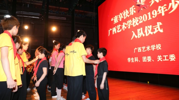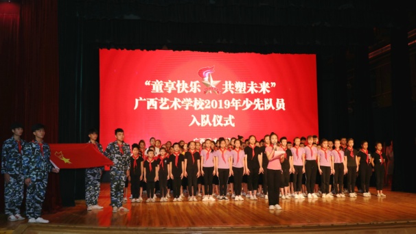 5月31日上午,广西艺术学校在舞蹈实训基地举行了“童享快乐 共塑未来”2019年少先队员入队仪式暨2018年度优秀少先队员表彰大会等系列活动。广西壮族自治区文化和旅游厅党组成员、副厅长唐正柱在会上致词,并代表厅党组为孩子们送上节日慰问金;信息科技教育处调研员黄胜,广西艺术学校党委书记罗征,党委副书记、纪委书记冯森,党委委员、副校长李其华、叶华生,督导员、关工委主任杨素妮,学生科、团委及关工委全体人员,学校全体少年儿童以及新少先队员、优秀少先队员参会。